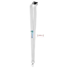 Premium-Lanyard 20 mm mit Metallhaken und Sicherheitsverschluss. Dieses professionelle Accessoire bietet Langlebigkeit und Sicherheit für den Einsatz in Unternehmen und bei Veranstaltungen. Das 20 mm breite Band sorgt für hohen Tragekomfort und gute Sichtbarkeit. Der integrierte Sicherheitsverschluss verhindert Unfälle am Arbeitsplatz, da sich das Band bei Zug löst, während der robuste Metallhaken Ausweise oder Schlüssel sicher hält.