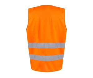 Zertifiziert nach EN ISO 20471:2013 A1:2016 Klasse 2. Die Farbe Orange entspricht ebenfalls der Norm RIS-3279/TOM. Verschluss mit Velcro®. 2 horizontale Reflexstreifen (genäht).